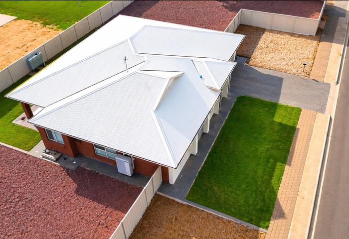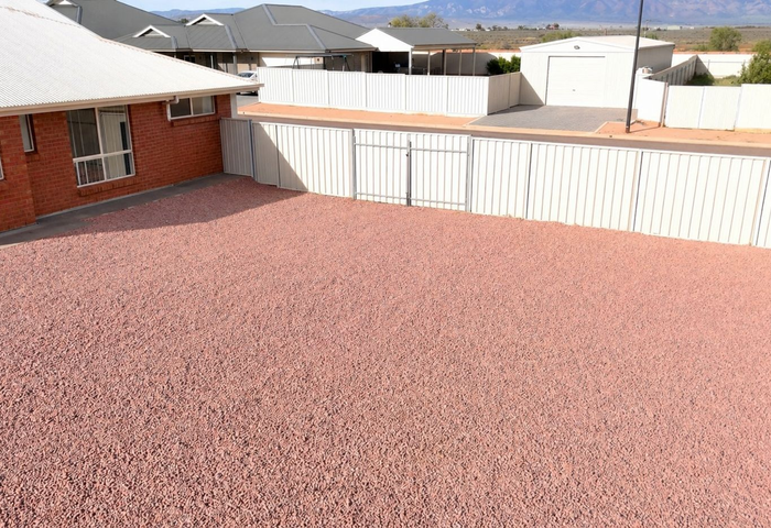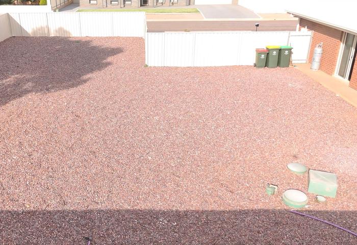 The rear yard includes a council-endorsed waste management system compliant with a 2009 Port Augusta Council 10-year endorsement. The endorsement also specifies that the property is approved for one single-storey dwelling only.
