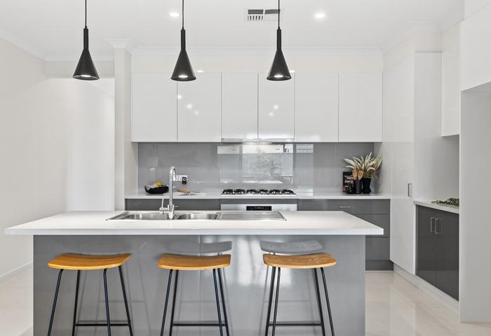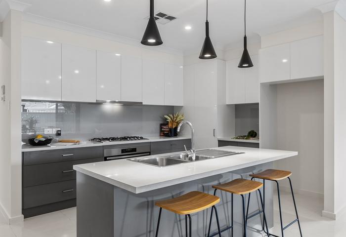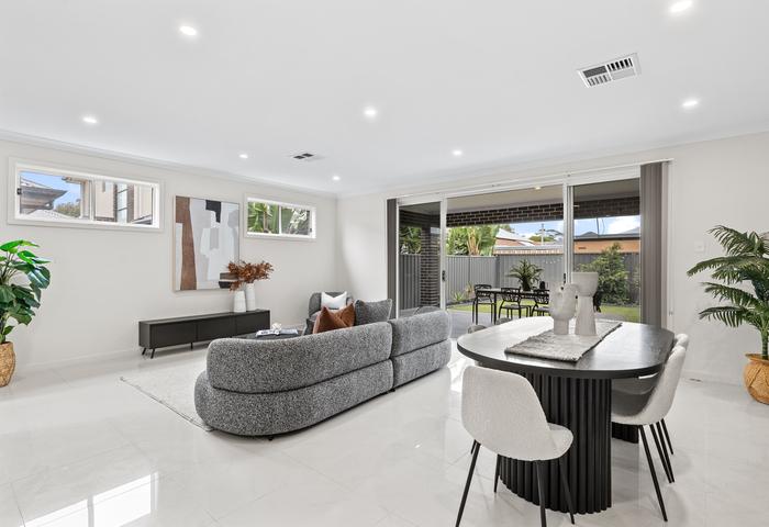 The spacious open-plan kitchen, family, and meals area is located at the rear of the home and seamlessly opens onto an undercover alfresco area, overlooking a low-maintenance garden with artificial lawn—perfect for easy living and entertaining.