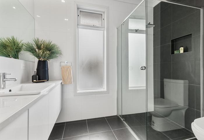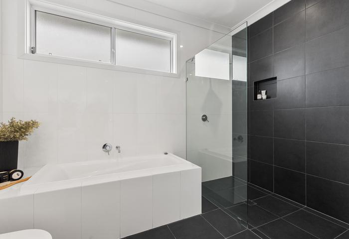 Featuring modern décor throughout, the home comprises three carpeted bedrooms. The master bedroom includes a walk-in robe and private ensuite, while the remaining two bedrooms are generously sized, both fitted with built-in robes. The second bedroom is particularly spacious, measuring approximately 5.1 metres in length. These bedrooms are well serviced by the main bathroom, complete with a bath, large walk-in shower, and toilet.