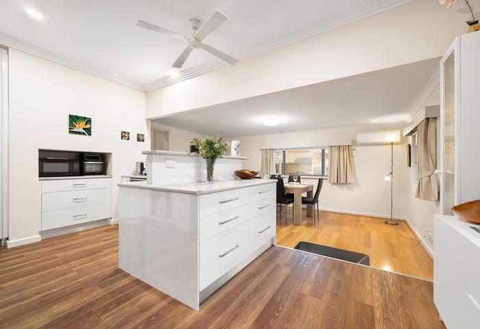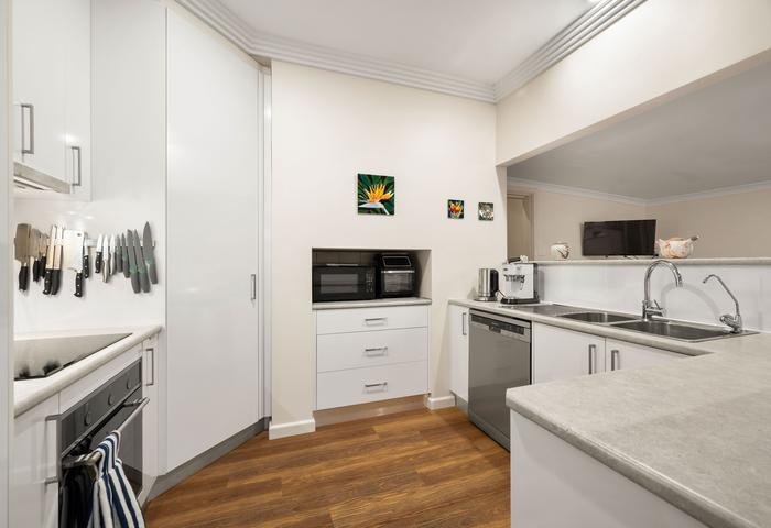 The kitchen is designed for both style and efficiency, offering a large pantry, electric cooktop and oven, and plenty of spacious drawers to store electrical items, crockery, and glasses.