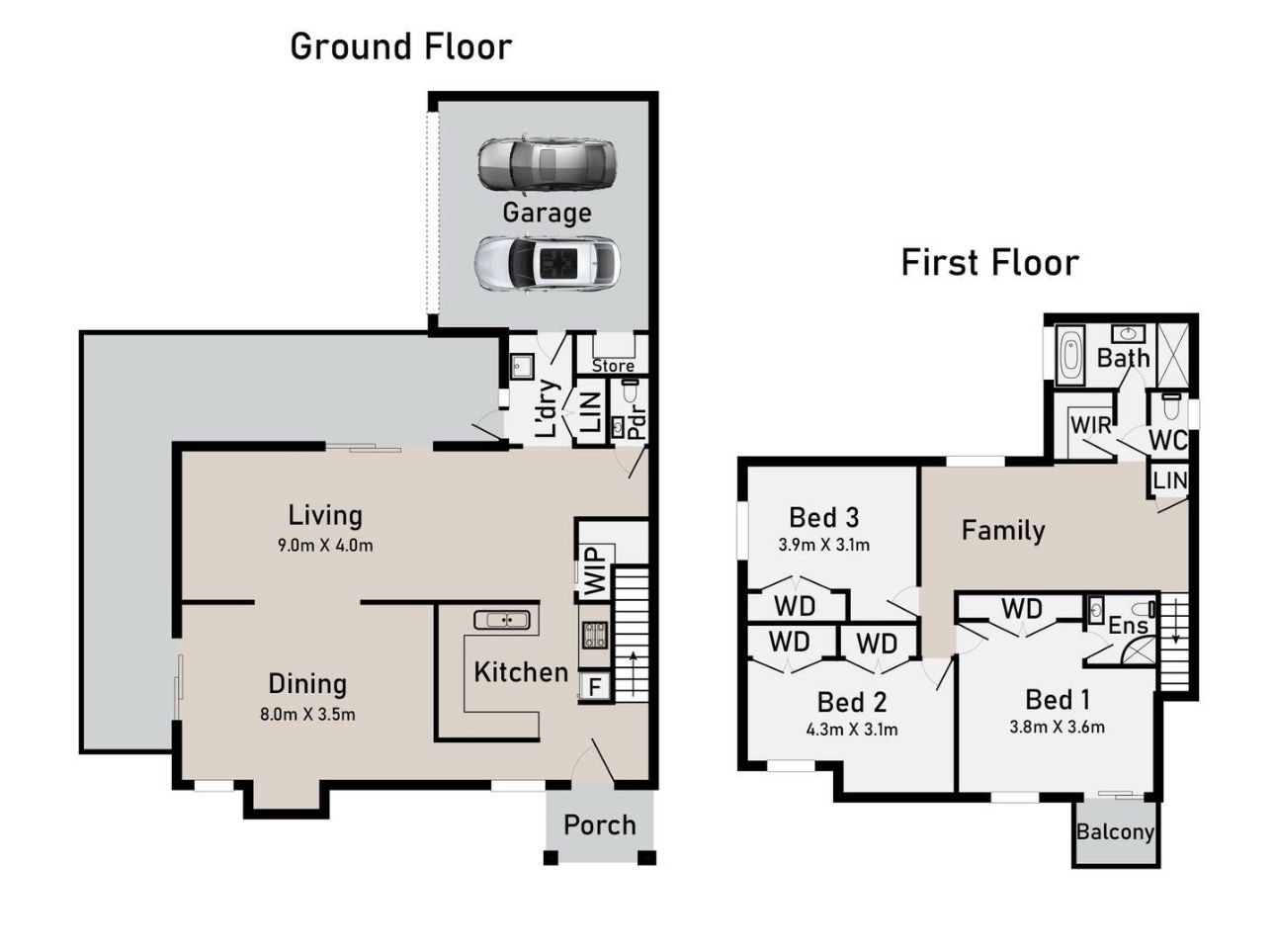 • Three bedrooms upstairs for privacy and personal space.