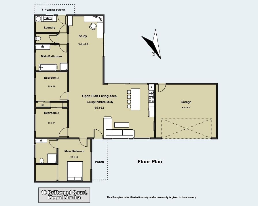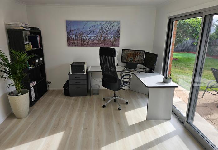 This beautiful residence features 3 comfortable bedrooms with built-in robes, perfect for family living or hosting guests. Enjoy the modern convenience of 2 bathrooms and a dedicated study area, ideal for working from home. The open-plan living area is complemented by elegant floorboards and underfloor heating, creating a warm and inviting atmosphere year-round.