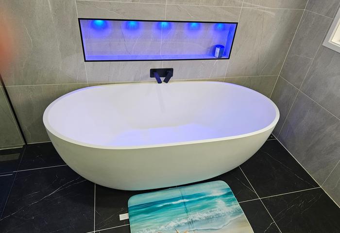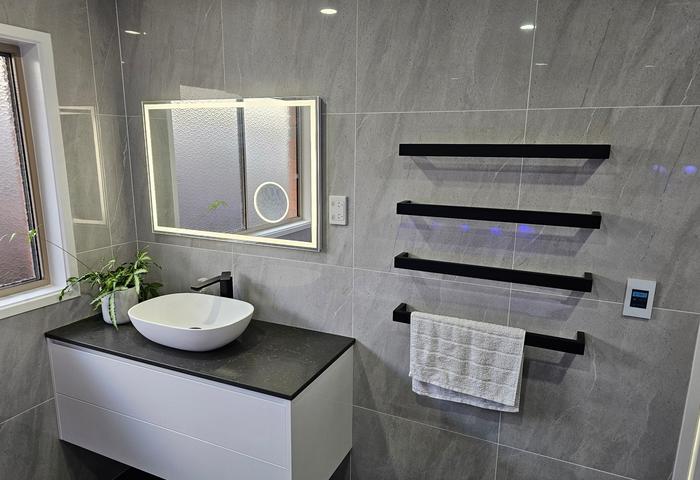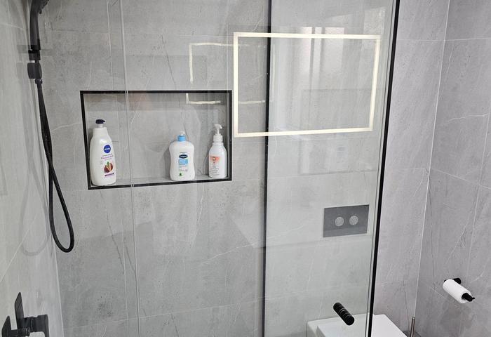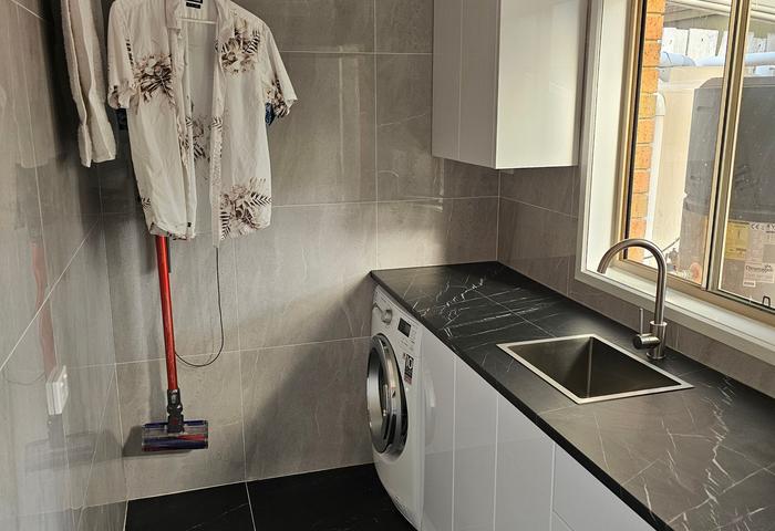 9. Bathrooms/laundry fully tiled up to the ceiling.