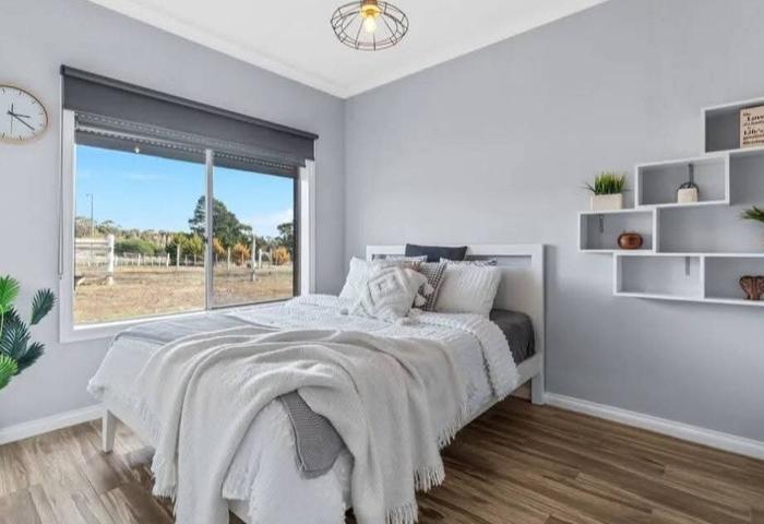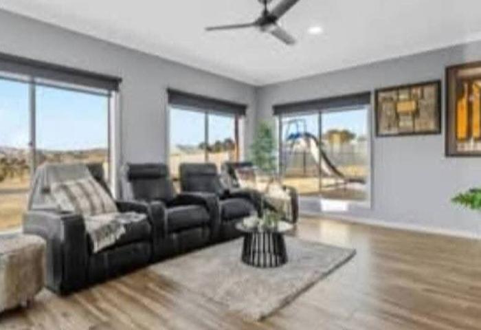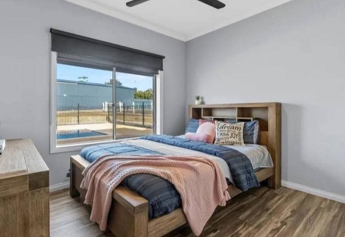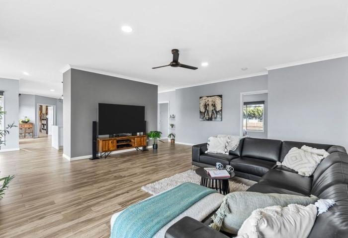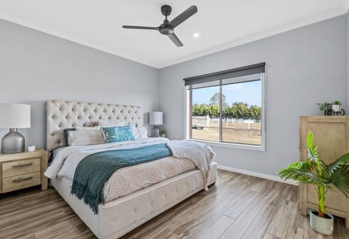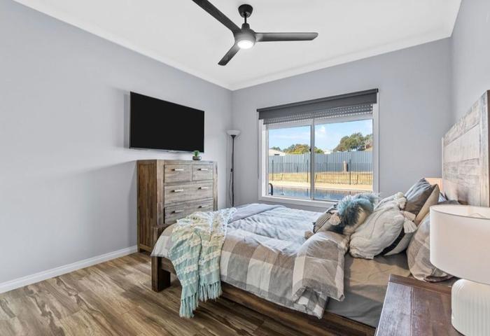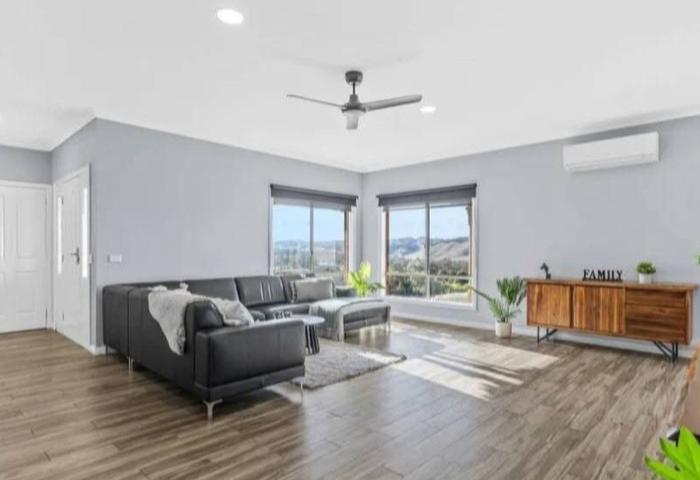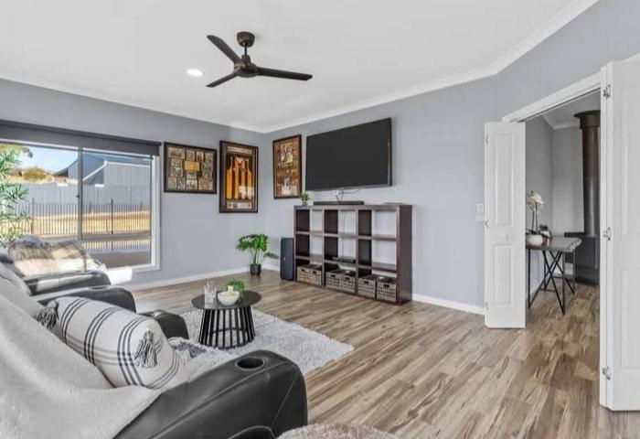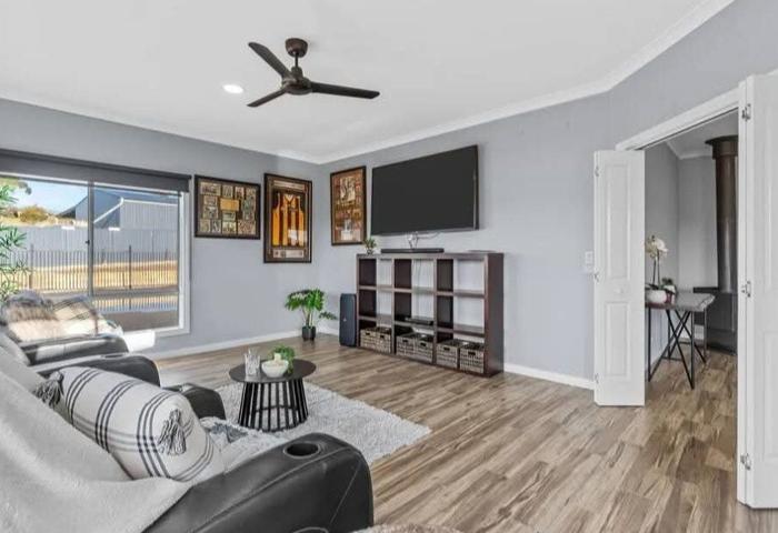 - Spa ensuite, timber-look tiles, wood fire, split-system heating/cooling, ceiling fans