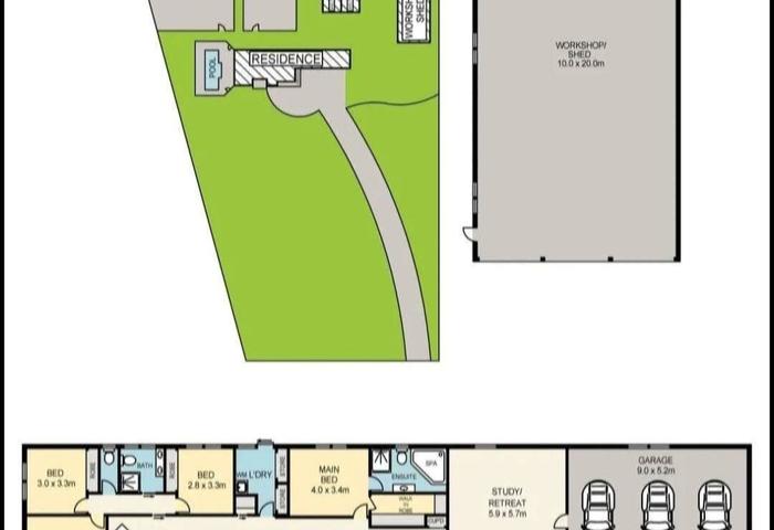 - 20m x 10m shed with triple roller doors (one extra-high)