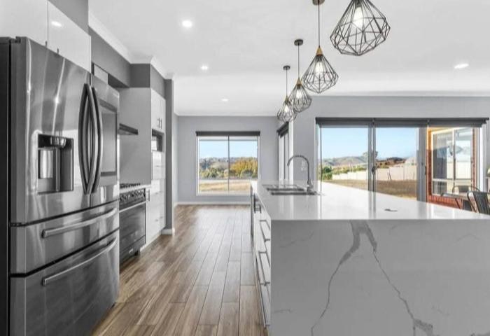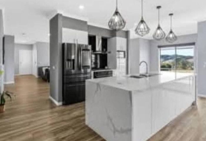 - Renovated luxury kitchen with stone benchtops and double waterfall island