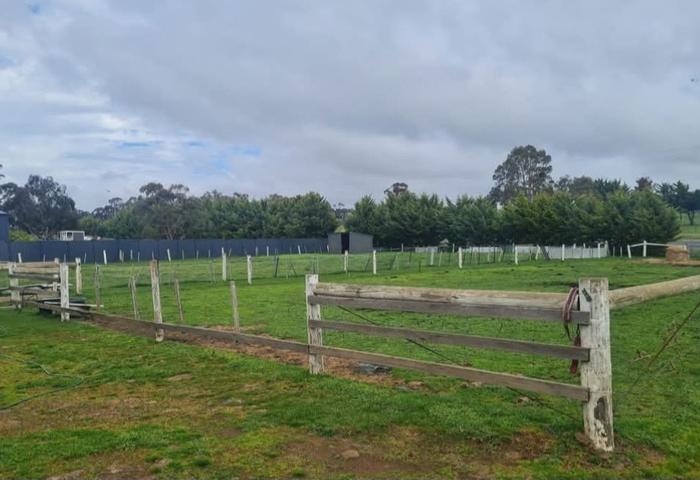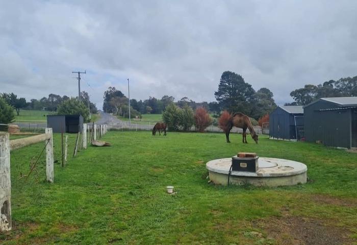 - Second shed on a concrete base – ideal for feed, tack, tools, or extra storage