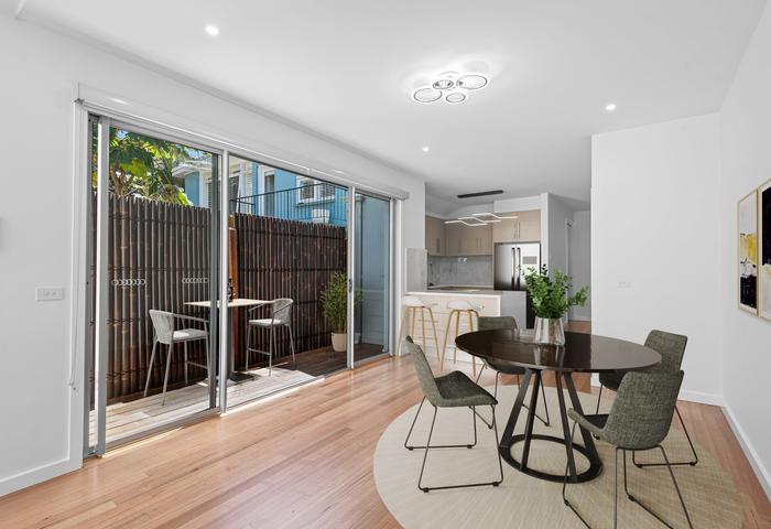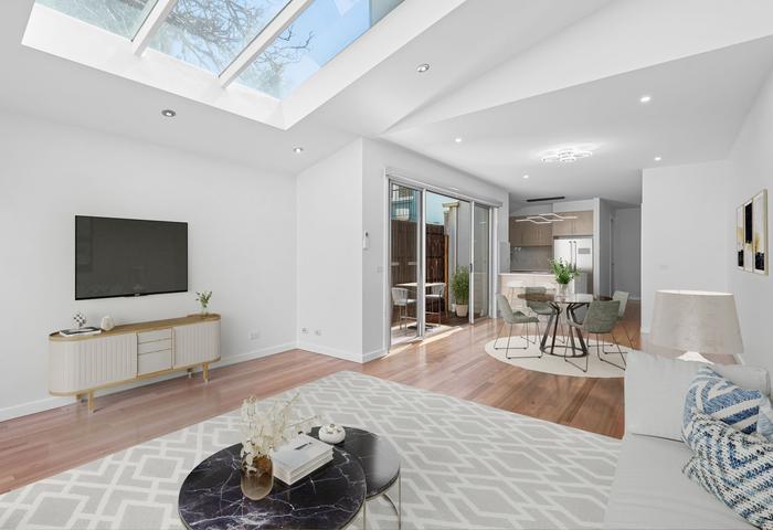 Discover your perfect seaside retreat in the vibrant heart of St Kilda! This charming property offers a comfortable and stylish lifestyle with 3 spacious bedrooms and 2.5 modern bathrooms, ideal for family living or entertaining guests. The open-plan living area is bright and inviting, seamlessly connecting to a well-appointed kitchen equipped with latest new Bosh appliances and stone bench top island– perfect for creating memorable meals and gatherings. Small courtyard next to kitchen offers moments of morning coffee in tranquillity.The living area with impressed large skylight extends to a large private courtyard through second stacker doors, providing an ideal retreat for alfresco family dining or hosting gatherings.