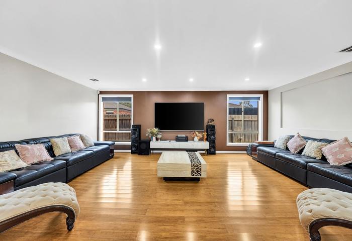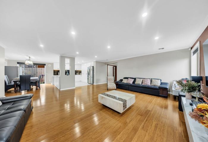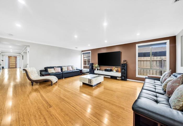 Spacious family home in Truganina – 5 bedrooms, 2 bathrooms, 3 living areas, and a double garage. Priced at $1,200,000 on a 591m² block. Walking distance Westbourne Grammer School