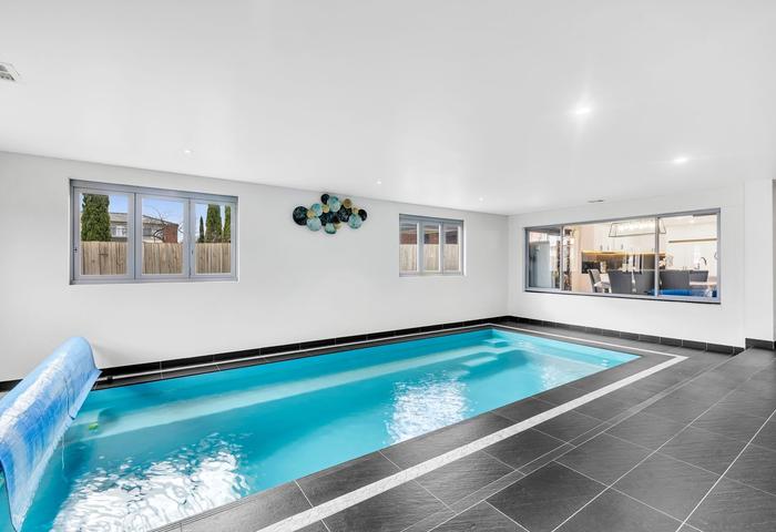 - Features: Indoor heated pool, evaporative cooling, ducted heating, alarm, study, dishwasher, built-in robes, floorboards