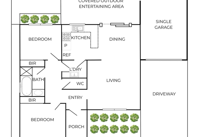 - Low-maintenance concreted courtyard with undercover entertaining area