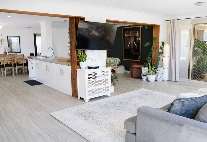 The kitchen and main living areas were renovated in 2020, featuring a modern kitchen with a striking concrete benchtop and an open plan living design that creates a bright and connected space for everyday living. With three separate living areas plus a dedicated dining space, there is plenty of room to relax and entertain.