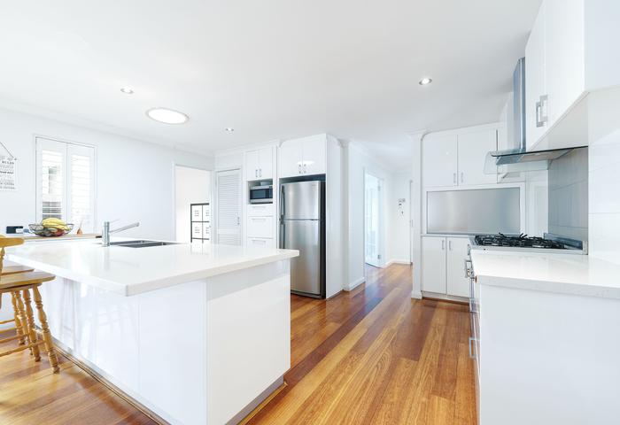At the heart of the home, the kitchen is designed for both function and entertaining, featuring stone benchtops and generous storage, making it ideal for family meals or hosting guests.