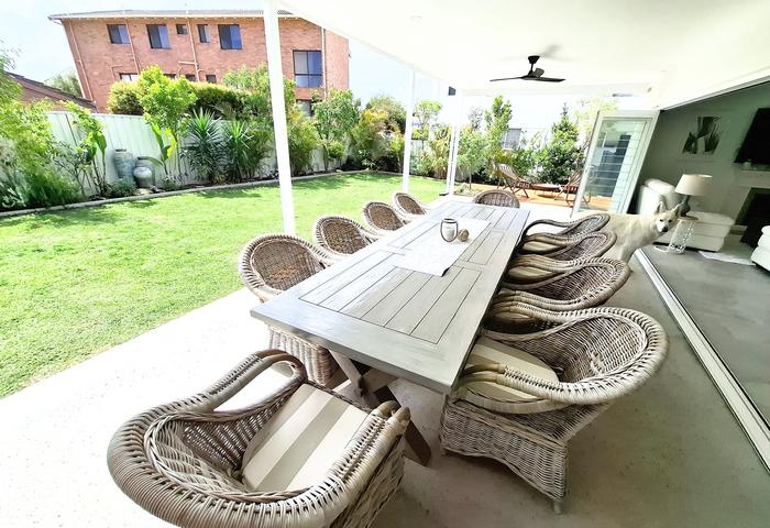 The beautiful EASY CARE GARDENS are rich with edibles such as native apple and plum trees, dwarf macadamias, paw paw, almond, mango, banana, native raspberries, lemons and much more, some producing already, with very little care needed. Fully reticulated gardens and lawns, and as there is no front yard, it requires very little maintenance, leaving more time to enjoy life and this stunning beach property.