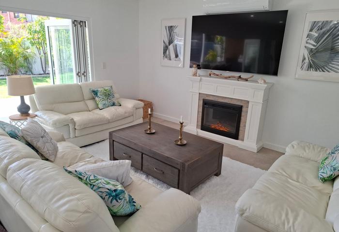 Throughout the home there are loads of SMART HOME FEATURES such as:- Point Pod in kitchen stone bench.- Pixie lights throughout house (control lights from phone app even while away.)-Eufy security doorbell system (view video, motion detection, talk to people through the doorbell all through a phone app, no need to be there.)- 7hp Air conditioning units controlled through Haier app or via remote.- Sauna with bluetooth speakers that link to your phone.- Doorbell with keyless entry