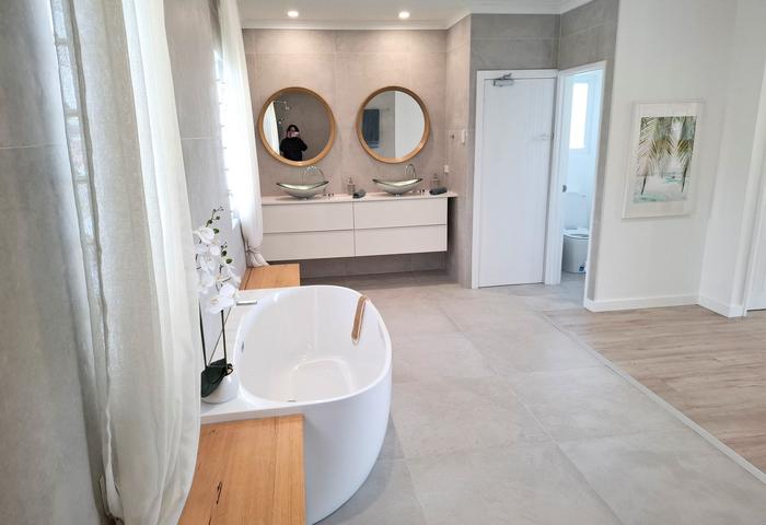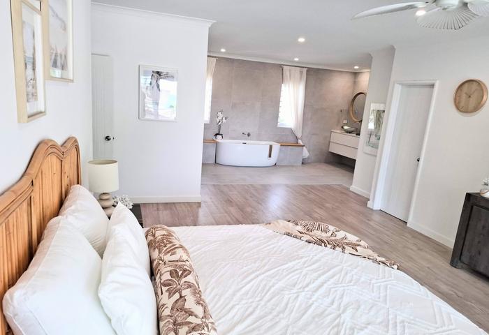 In this 3 bathroom, 4 bedroom property (plus outdoor shower and toilet) you'll have plenty of room to share with family and friends, but the MASTER BEDROOM is all yours, and it is truly something special: A beautiful retreat, which includes a dumbwaiter lift that comes up from downstairs, a 3 person sauna, massive walk in robe, a laundry shoot, double walk in shower, and with it's open bathroom design, you can lie in your bathtub looking at the view or watch your favourite TV shows while you soak in luxury.