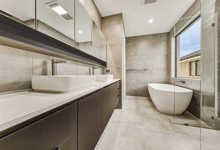 • High-end gunmetal grey fixtures from brands such as Nero and Caroma