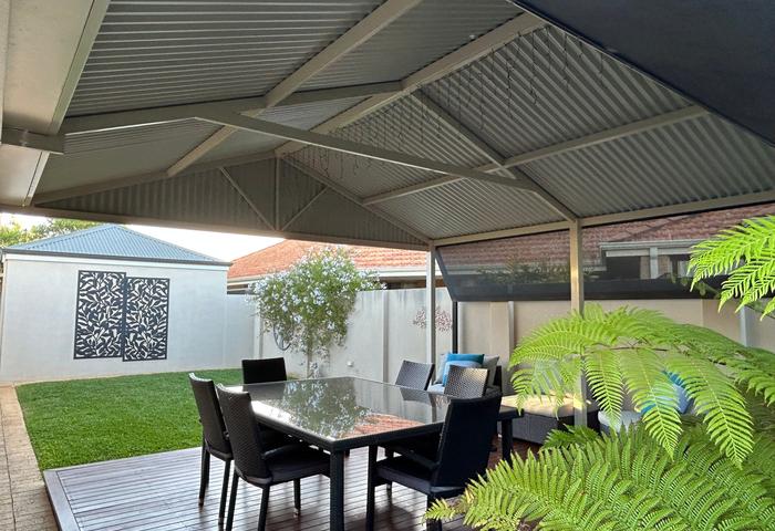 Stepping out of this central area towards the backyard, you enter the INfresco. A handy room with deck flooring and wide sliding doors to bring the outside in. More cabinets and a fridge recess provide space and storage for your outdoor cooking equipment.