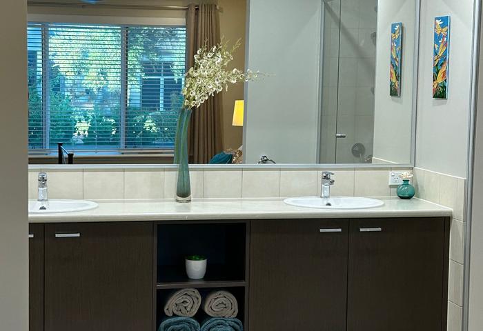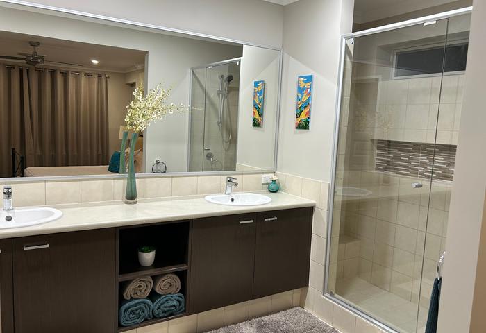 The three double bedrooms, each with their own ensuite, have large built in robes for plenty of storage. Spaced sensibly apart, each bedroom provides privacy for a home that caters well for teenage or adult children, or for adults sharing the house, and are a key reason why this house design works so well.