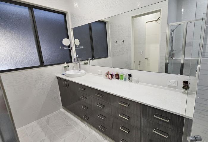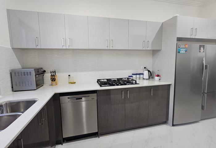 - Soft-close cabinetry and drawers in the kitchen and bathrooms