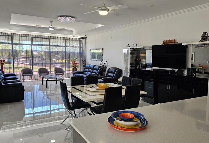 Built end 2018, this stunning 4-bedroom, 3-bathroom residence features a spectacular open-plan living area that seamlessly transitions to the outdoor entertaining space, perfect for year-round enjoyment, whether in winter or summer.