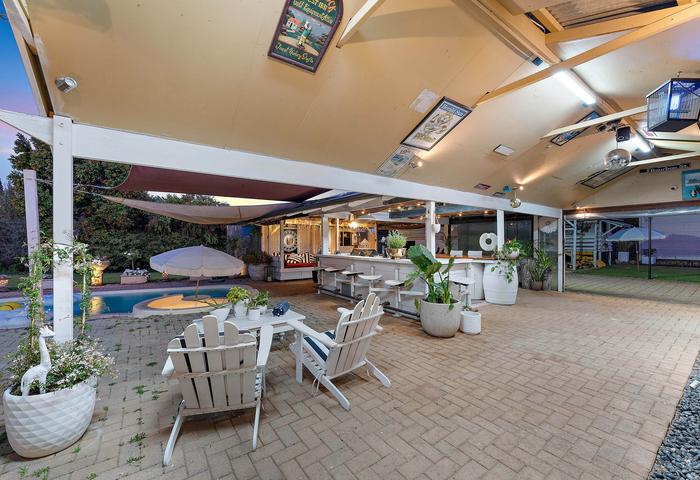 Outdoors, the home transforms into a private sanctuary — a fully equipped entertainer’s paradise with a sparkling saltwater pool, heated spa, and a cabana-style pavilion complete with dining area, pub-style bar, beer taps, and keg system. Host unforgettable gatherings under soft lighting and heat lamps, or unwind with a glass of wine as the evening unfolds across manicured lawns and lush greenery.