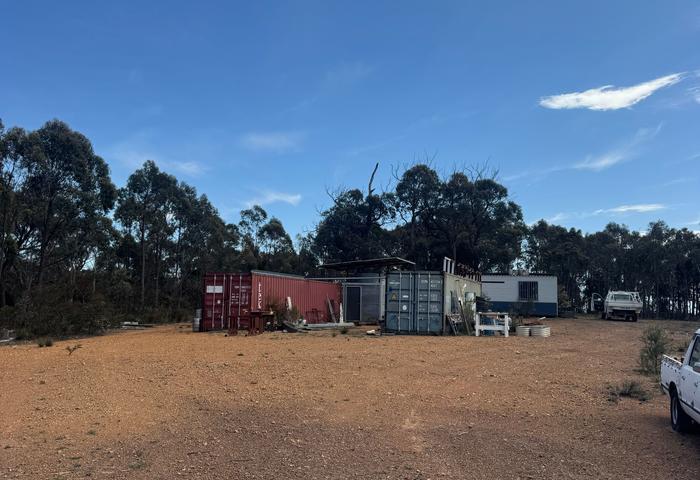 There is basic weekend style accommodation, 2x demountable buildings serving as bedrooms, a toilet block and 2x 40 ft shipping containers for storage / workshop space.