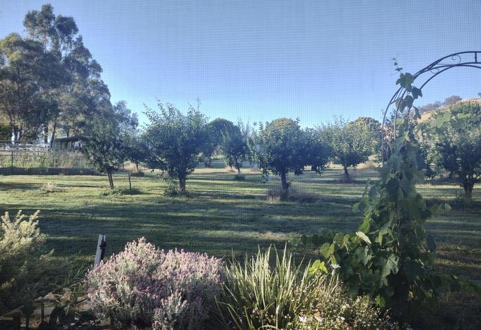 - orchard with around 100 trees, including apples, plums, apricots, cherries, figs and pears