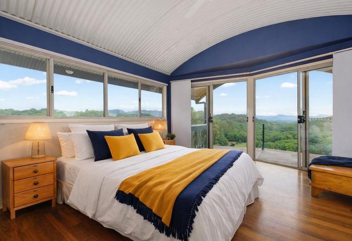 Make the most of the region's hospitable climate with al fresco entertaining opportunities. The hanging firepit at the treehouse, which sleeps three, is ideal for a sausage sizzle and sleepover. At the shed, the undercover picnic area with its unique suspended timber tables is perfect for a cuppa with friends. Winter bonfires anywhere on the property are a treat. The main deck at the house features passionfruit growing on the fence - fresh fruit for cocktails. Stepping from the master bedroom to the upper deck is stepping like into the sky! It is perfect for meditation, reflection and inspiration.