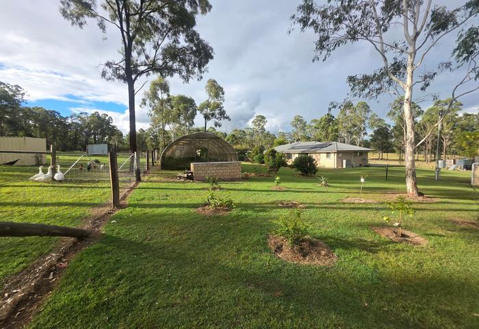 - 12m x 6m Greenhouse with irrigation, vegie patches and established fruit trees