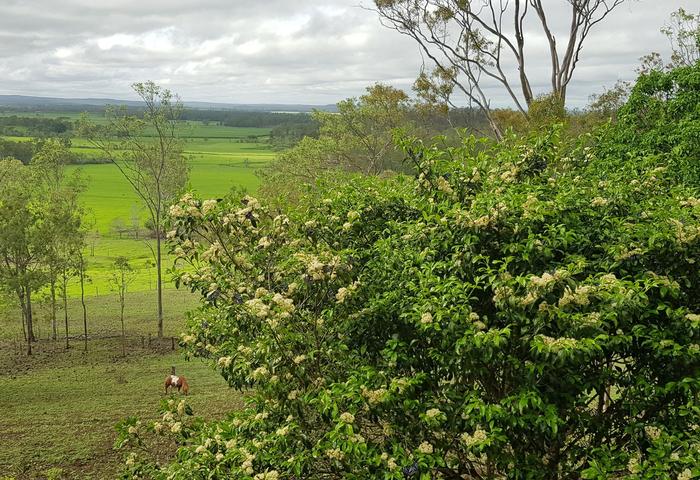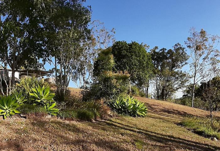 Fruit trees galore: mango, macadamia, lychee, red dragonfruit & medicinal gumbi gumbi tree