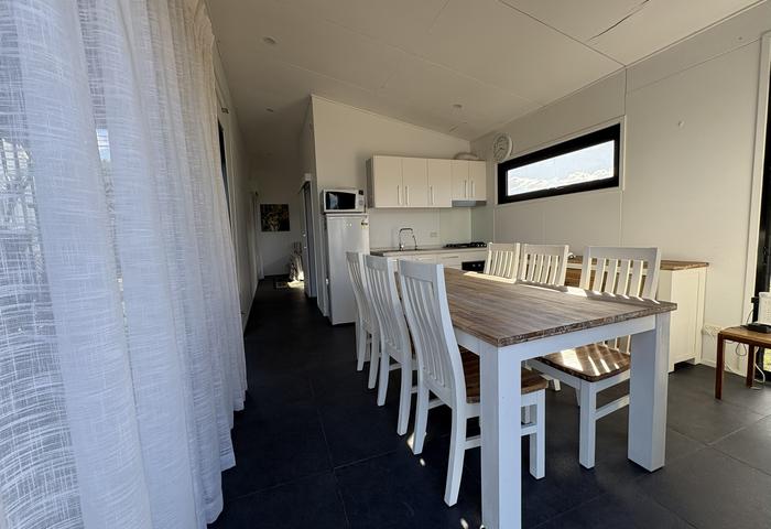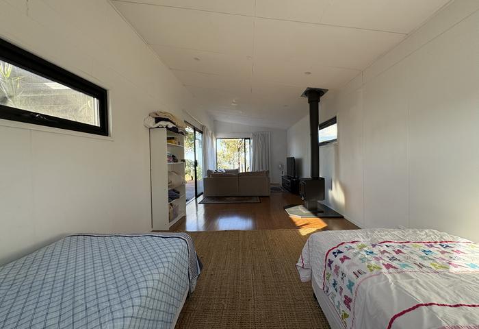 The contemporary home features an open-plan layout with kitchen, dining and living areas designed to maximise natural light and views. A flexible second pavilion space can function as an additional bedroom, office or studio.
