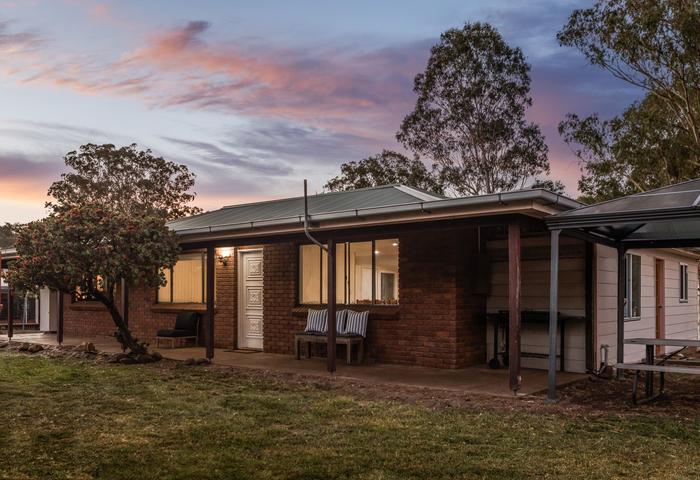 The property features two council-approved, solid brick veneer dwellings on an elevated, flood-free homesite with beautiful creek views. Both homes are connected to mains power with separate meter boxes. A large shed has been thoughtfully converted into a stunning country barn-style entertainment venue, complete with a gorgeous band/music stage, full bathroom, bush kitchen, internal dining, and alfresco areas.