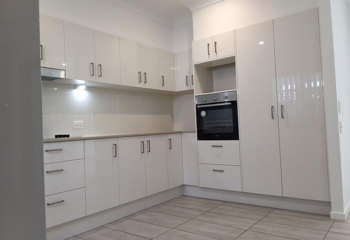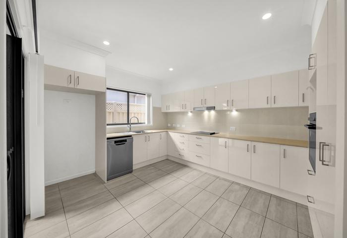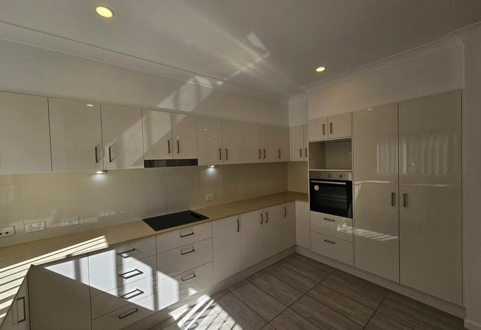 Step inside and you’ll immediately feel at home in the open-plan living and dining area, featuring high ceilings, ceiling fans, and air conditioning for year-round comfort. The modern kitchen is a showstopper, complete with a cooktop, oven, dishwasher, large fridge space with water connection, and sleek 2-pak cabinetry — everything you need for easy entertaining.