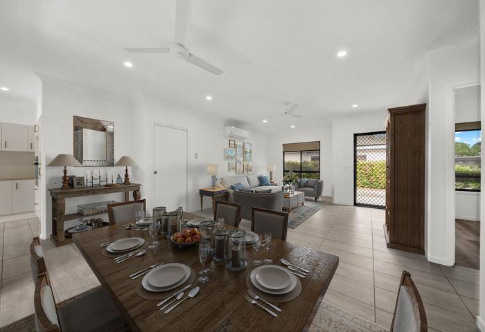 Outdoors, relax or entertain in style under the covered alfresco area, complete with a ceiling fan for those warm Queensland days. Accessible from the master bedroom, kitchen, and living area, this space connects seamlessly to the heart of the home.