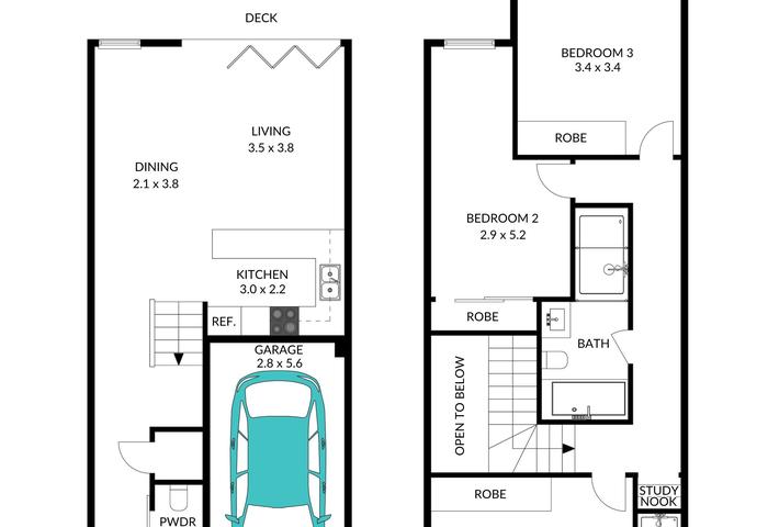 - Spacious open plan living and dining area, plus a compact study nook upstairs