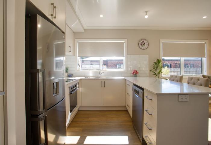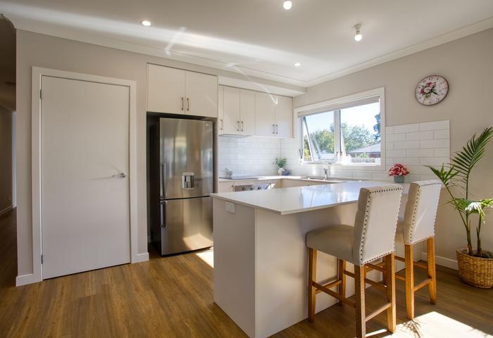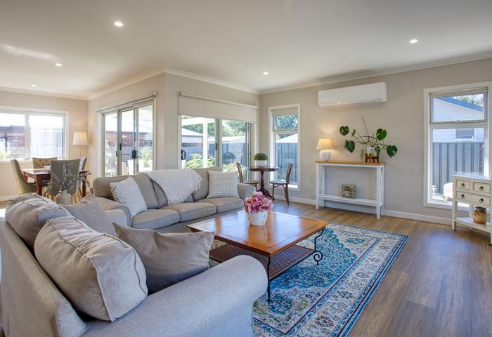 Inside, you’ll find two generously sized bedrooms, including a master with walk-in robe and private ensuite, while the second bedroom features a spacious built-in robe. Quality carpets and durable vinyl plank flooring are complemented by double-glazed windows and excellent insulation, ensuring year-round comfort.