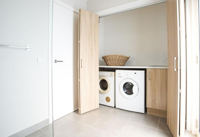 The well-appointed kitchen is a standout, featuring an induction cooktop, dishwasher, striking granite benchtops, and a generous pantry. The spacious second bathroom includes a separate toilet and a cleverly concealed European laundry, hidden behind attractive timber bi-fold doors.