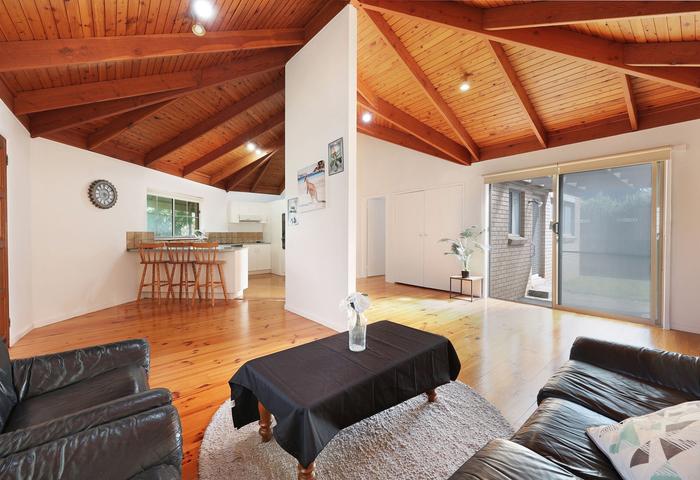 The recently renovated bathroom adds a stylish contemporary touch, while two comfortable bedrooms include built-in wardrobes for convenient storage. Reverse-cycle air conditioning ensures year-round comfort.