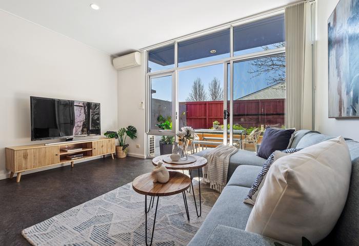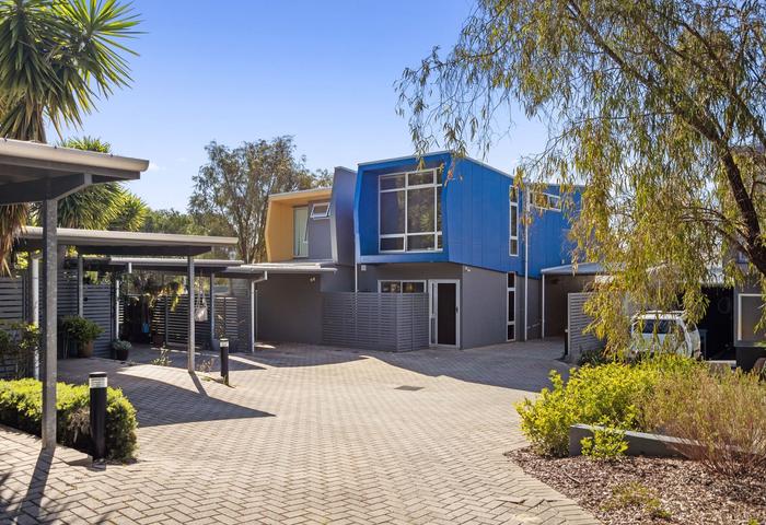 This property stands out as one of the most refined in the complex. North facing, the outdoor space is a true retreat, featuring a fully fenced courtyard with a raised easy to maintain garden bed. A mature deciduous pear tree provides plenty of shade in the summer and sunshine in the winter. The property also includes a carport, providing secure parking and a small shed for adventurous toys or tools.