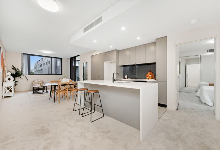 Positioned on the sought-after north-east corner of the acclaimed 'LUXE on Eve' development by Smith & Tzannes, this beautifully designed apartment offers a perfect blend of urban sophistication and tranquil living. Drawing from Erskineville’s rich industrial heritage, the architecture pairs striking dark brickwork with premium natural finishes to create a timeless aesthetic.