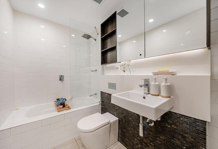 • Pristine bathrooms include a bathtub in the main