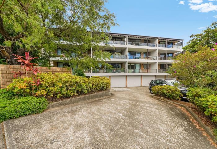 The main bedroom includes a private balcony framed by a leafy green outlook, creating a tranquil retreat. A double lock-up garage, modern bathroom, and well-maintained building complete this impressive package.