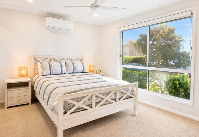 – Two generous bedrooms; Master with private ensuite and air-conditioning/heating, 2nd with direct access to rear deck