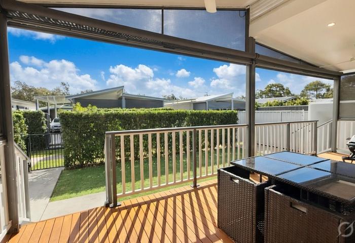 – Rear deck with versatile zip-track blinds, ceiling fans and lighting, perfect for year-round use