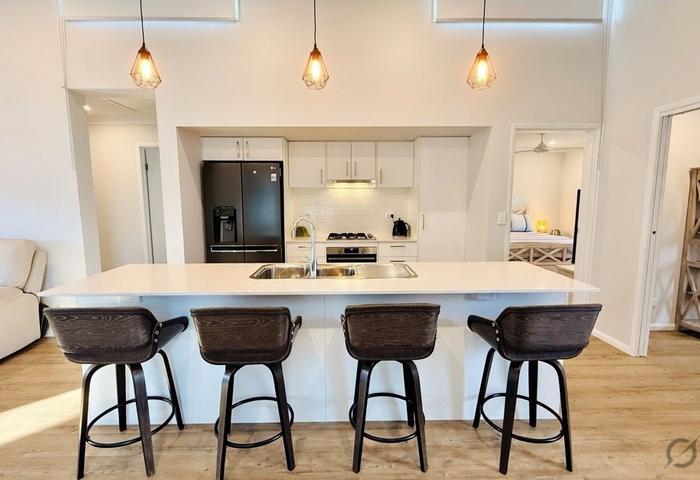 – Light-filled, open plan living, dining and kitchen with high ceilings creating a sense of space