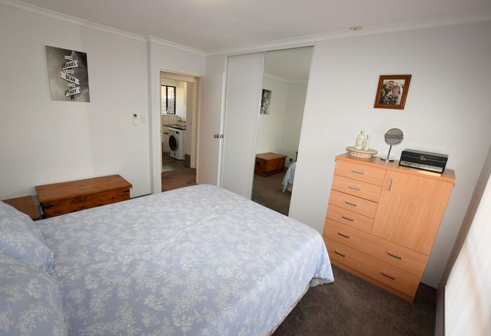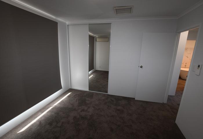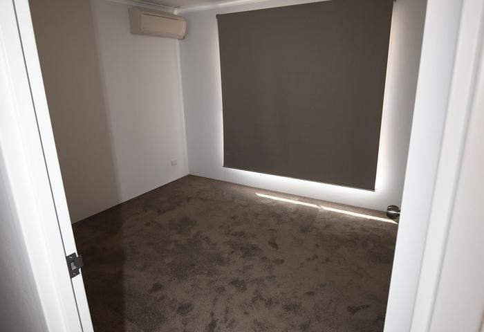 Two generous bedrooms with double built-in wardrobes, floor-to-ceiling mirrored doors, new carpet, and individual split-system air conditioning.
