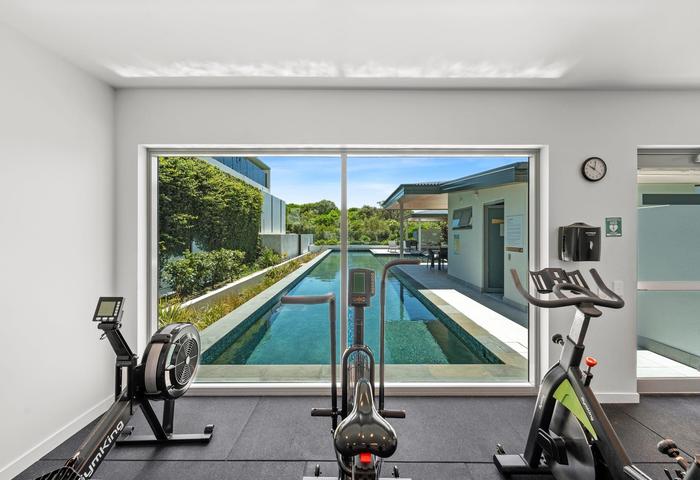 Outdoor highlights include an inground pool and an inground spa, plus a balcony to enjoy fresh air and sunshine. Residents also have access to a gym on-site, adding to the lifestyle appeal.
