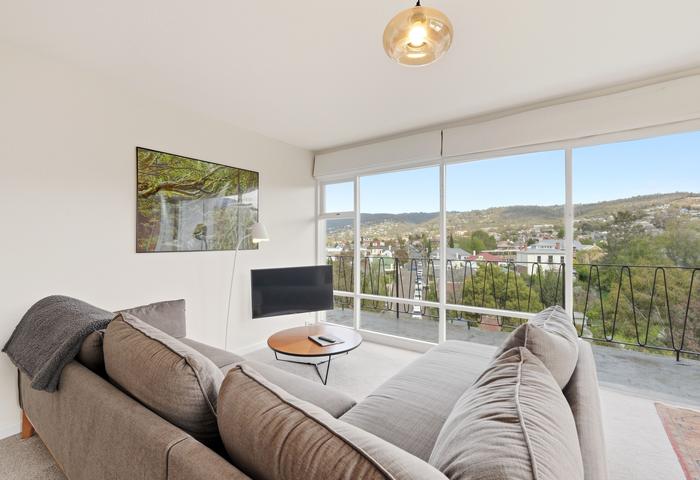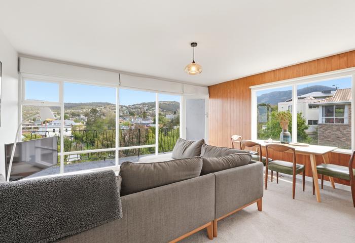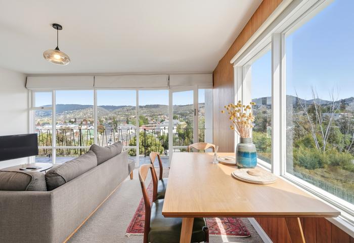 Mid-century character and contemporary style in this beautifully presented, fully renovated apartment boasting breathtaking 180-degree views from the mountains to the river. Complete with new wiring, plumbing, and stylish interior finishes, this home offers a perfect blend of comfort and elegance – just a short walk to Hobart’s CBD.