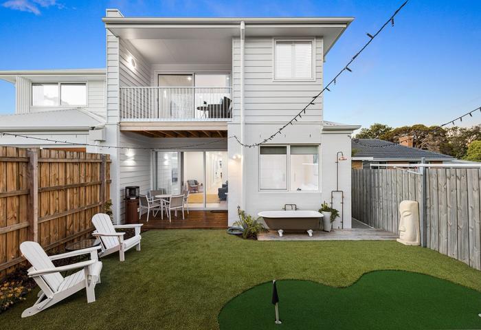 A rare opportunity in one of Rosebud’s premier coastal pockets, this exceptional offering features two architecturally designed, four-bedroom luxury residences on separate titles, available together or separately as the ultimate dual-living estate or an unparalleled investment with proven holiday-rental success — currently ranked among the top two holiday homes on the Mornington Peninsula (rated via Airbnb).